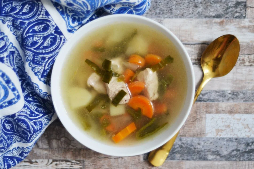 Lastly, add the chicken breasts and turn the heat way down low and leave to simmer. You can have the soup after about 30 mins but the longer you leave it, the nicer it is so, if you have all the time in the world I would recommend leaving it to simmer for 1 hour.